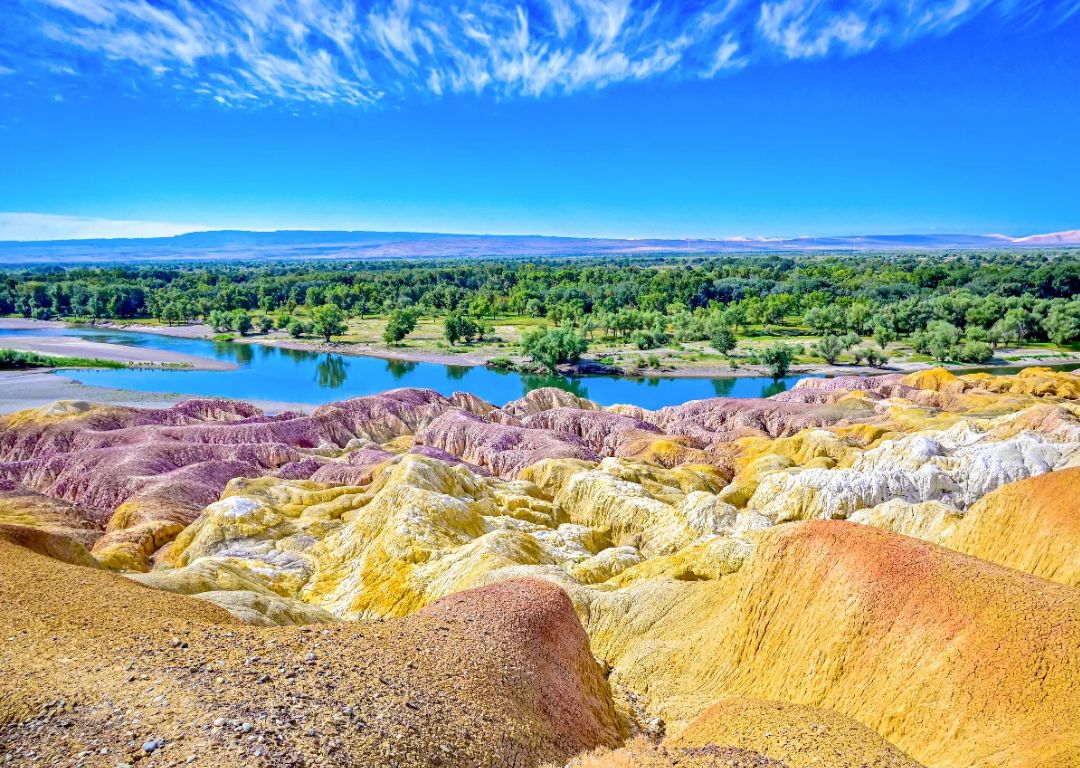 🏞️五彩灘:春夏的五彩灘如同一幅多彩的畫卷,色彩斑斕。
