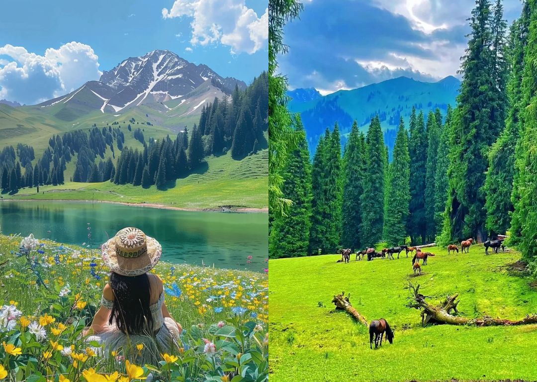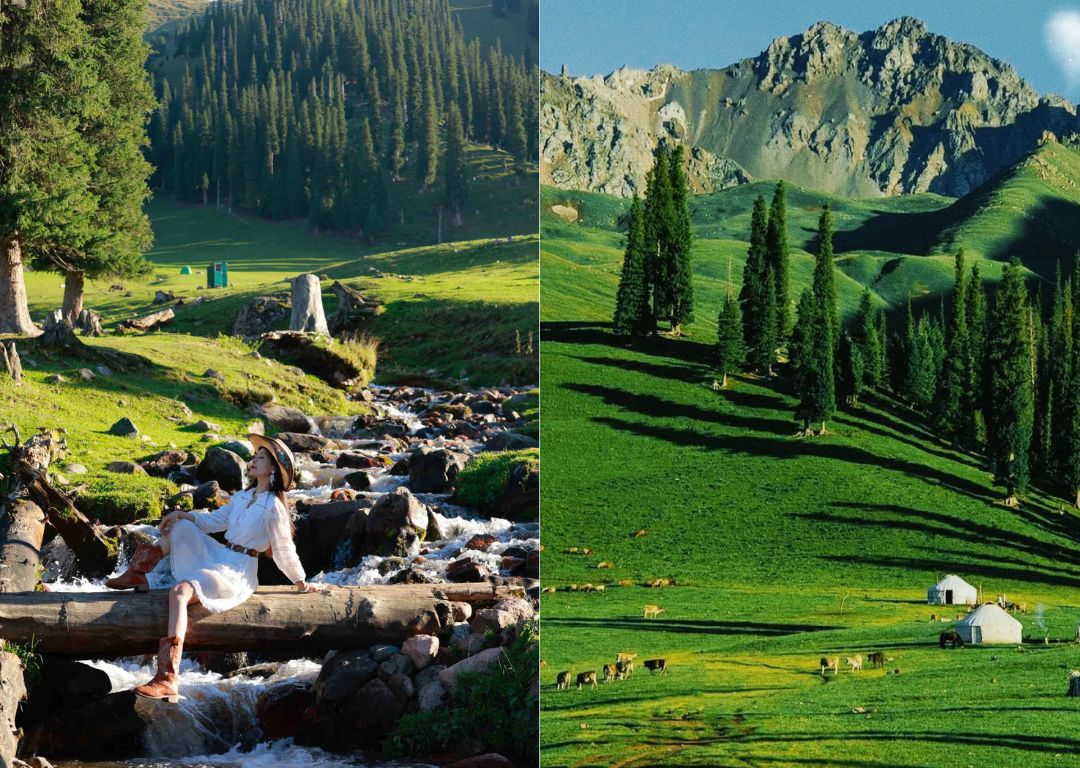 新疆的春夏景色非常迷人,草原綠意盎然,湖泊如鏡,山脈蒼翠。必去景點包括: