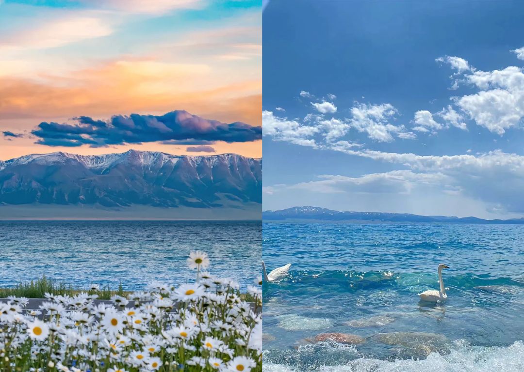 🏞️賽里木湖:高山湖泊碧藍,景色如詩如畫。