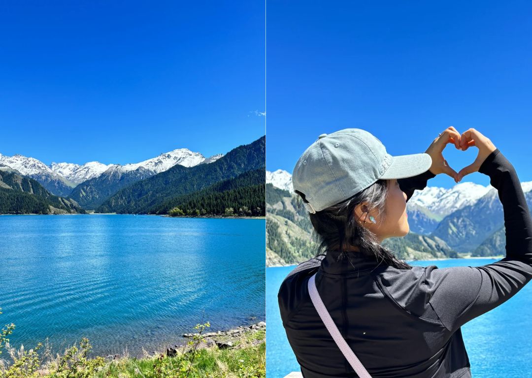 🏞️天山天池:瑤池景色如仙境,碧水映襯著山巒。